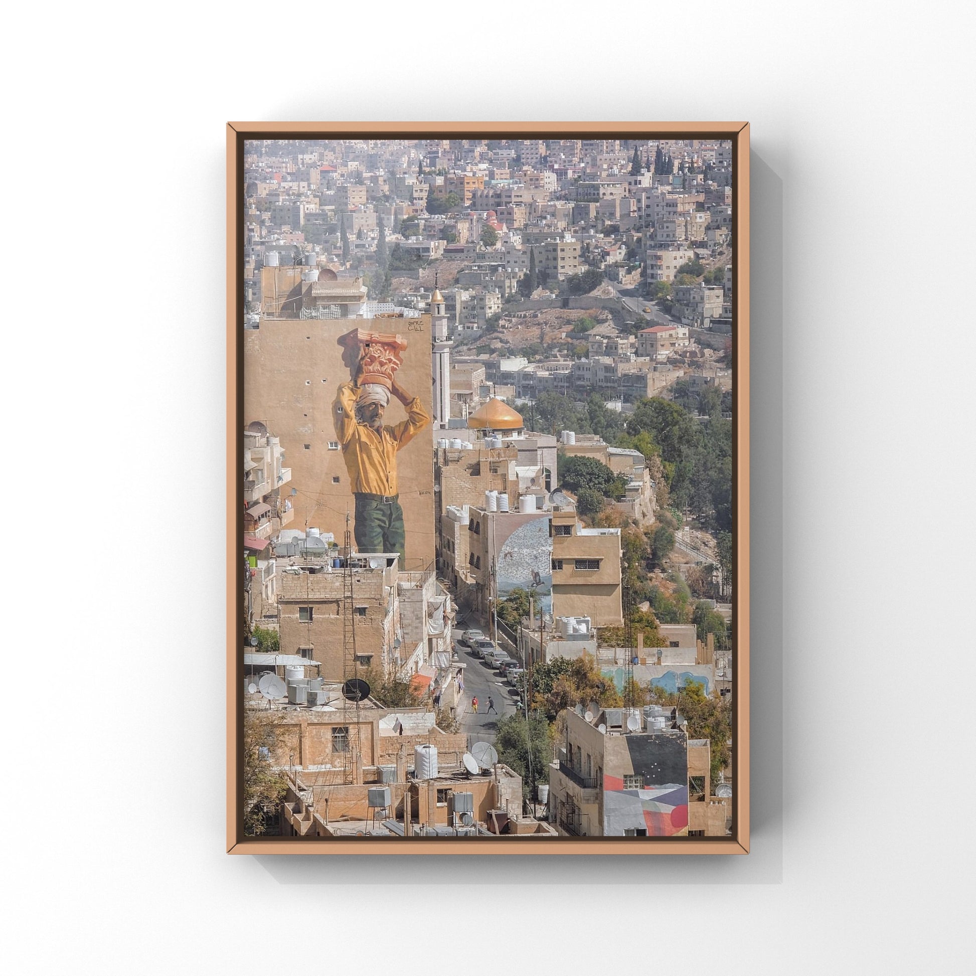 A mural with a Nabatean column stone amidst our beautiful Amman. Taken from Amman Citadel overlooking the Roman Amphitheater